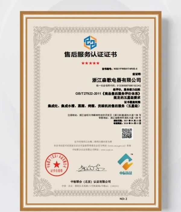 基于以上种种服务的优越,森歌荣获了“五星售后服务认证”“全国售后服务行业十佳单位”“全国顾客满意行业十大品牌”等荣誉称号,而这系列的打法,也让森歌拥有超高老客户转介绍率,成为有口皆碑的高端品牌标杆。