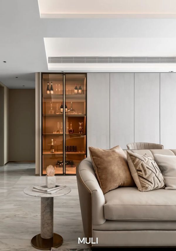 高奢的墙面,以形体为骨架,以油漆为魂。而板式系统柜,以金属系统为骨架,以高级材料的精细度为魂。