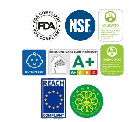 除此之外,华润乳胶漆铂金A+系列更凭借优异的环保性能获得了国内首批健康建筑产品标识认证,并通过美国绿色卫士室内空气质量金级认证,符合法国室内空气环境检测A+标准,以及欧盟REACH标准动态清单全项224项有害物质未检出等八大权威环保认证。