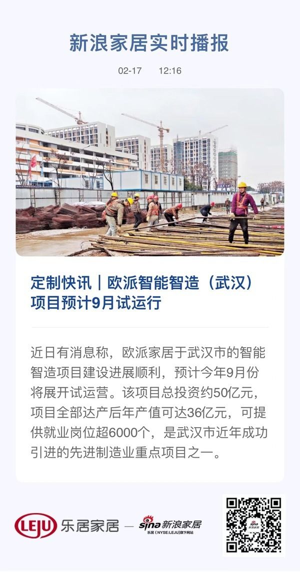 网址: 定制快讯|欧派智能智造(武汉)项目预计9月试运行 http://www.jiajubaike.cn/newsview85637.html