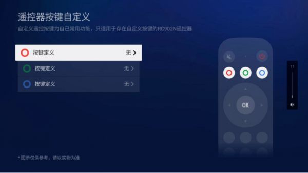 针对这个问题,TCL在遥控器上做了优化,贴心地增加了红绿蓝三种颜色的快捷键,设置后一键开启应用,有些像iOS里的快捷指令,对老人和小孩来说这种操作会更简单便捷。