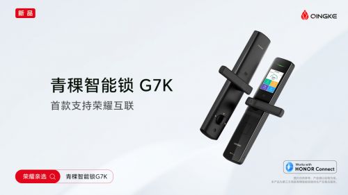 2023年2月26日,青稞发布HONOR Connect生态产品G7K并正式上线荣耀亲选平台。借助HONOR Connect平台,青稞门锁可以实现与HONOR Connect生态产品全场景设备之间的快速匹配、全面互动,解决了设备之间接续、配网、传输等难题。