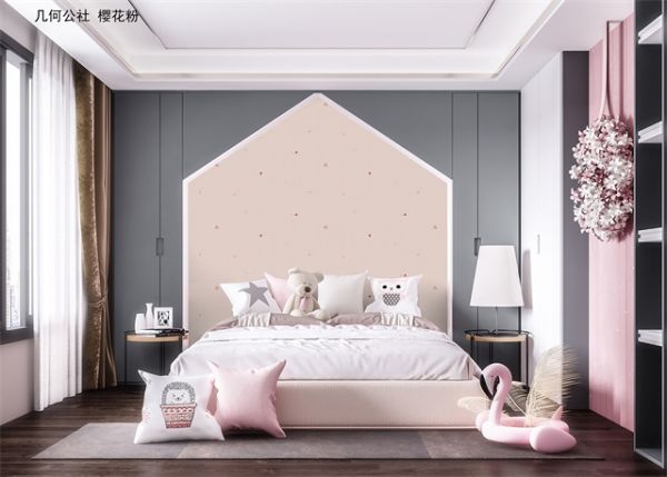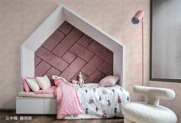 因此住在粉色装饰的房间中