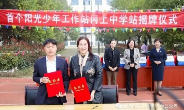 编辑冈上镇人民政府党组成员、副镇长樊佳春致欢迎词并对工作站的建成表示祝贺!南昌市女企业家协会和南昌县冈上中学就“阳光少年工作站冈上中学分站”签署协议