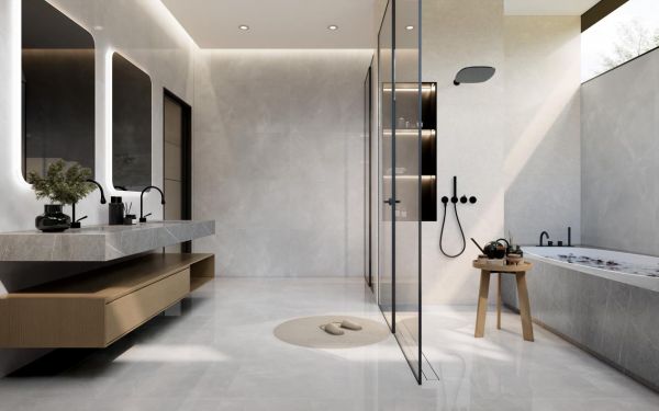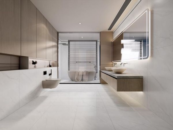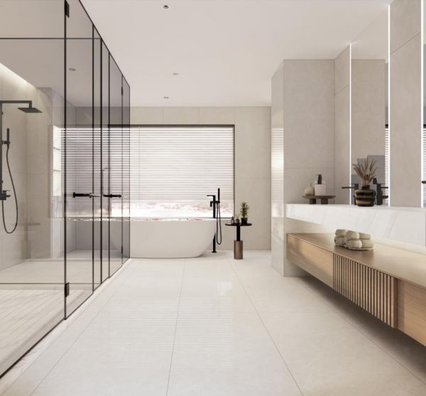 而在选砖方面,相较于稳妥而传统的400×800mm、450×900mm瓷砖,越来越多消费者更钟情于600×1200mm,无论上墙下地还是厨房、浴室等多场景,均可完美契合装饰需求实为跨界应用首选。
