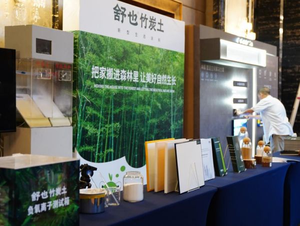 我们的材料是解决室内环境的空气污染问题,整体的是以人居健康来做解决方案,解决室内甲醛、有害苯类、PM2.5、异味等空气问题,释放的负氧离子能增强大脑皮层的功能和脑力活动,提高工作效率,改善失眠、抑郁症、神经衰弱等疾病,营造一个健康舒适的室内人居环境。我们可以跟很多的家居以及全屋整装做配合,因为目前很多产品只是单一性的,而舒也竹炭土具备多功能性,全屋场景定制室内解决⽅案。我希望把竹炭土材料带给千家万户,返璞归真,回归于大自然,让大家去认识国货精品,希望每个家庭都能用上生态自然的产品。