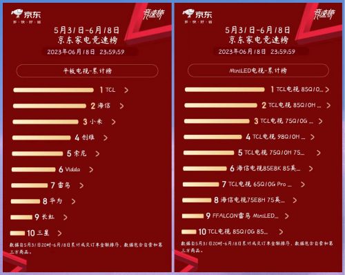 TCL屠榜618,包揽榜单前五名,海信、索尼尽显颓势