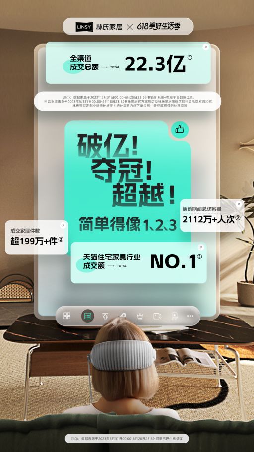 作为一家以互联网起家,承载着电商基因的家居企业,林氏木业今年的“618”成功出圈可以说是理所当然。在其“重磅布局”下,今年“618”全渠道成交总额达到22.3亿,同比增长37%,成交量超199万+件,在线流量增长达20%以上。