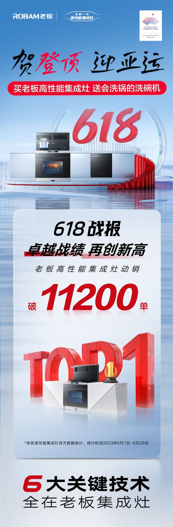 技术加持下,老板全新一代高性能集成灶一登顶线下,市占就达TOP1,618卓越战绩更是再创新高。从技术到人文,老板高性能集成灶以高性能硬核产品为引擎,为用户提供如沐春风的使用体验,构建起更高阶的产业竞争生态,引领行业向更高标准迈进。