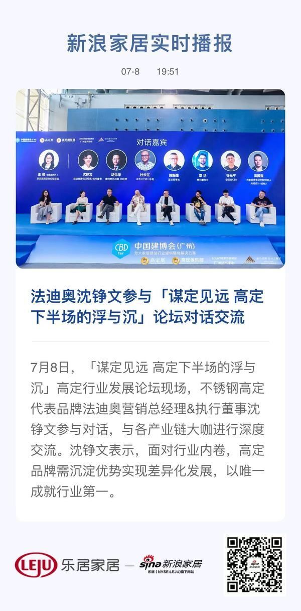7月8日,「谋定见远 高定下半场的浮与沉」高定行业发展论坛现场,不锈钢高定代表品牌法迪奥营销总经理&执行董事沈铮文参与对话,与各产业链大咖进行深度交流。沈铮文表示,面对行业内卷,高定品牌需沉淀优势实现差异化发展,以唯一成就行业第一。