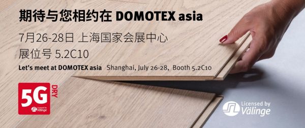 不要错过在DOMOTEXasia 2023地材展与Valinge威林格见面的机会,展台位于5.2展厅C10展位。全面了解更多关于威林格的技术信息,亲身体验地板技术的未来将有什么变化!