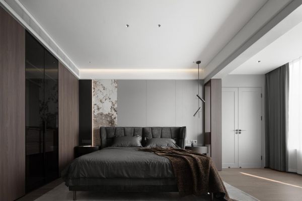 整个空间结构梳理至最简单纯粹的形式,客厅、书房和楼梯间之间形成了一种穿插的空间感,带来了更加开阔自然的感受,整体颜色偏稳重,选择部分区域选择白色大理石作为点缀,光影,空间,色彩上都加深了层次感,形成了一处动线顺畅,视野开阔的融合空间。