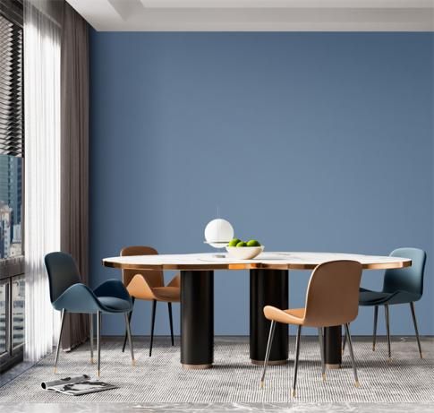 蓝色系的墙布在通过与