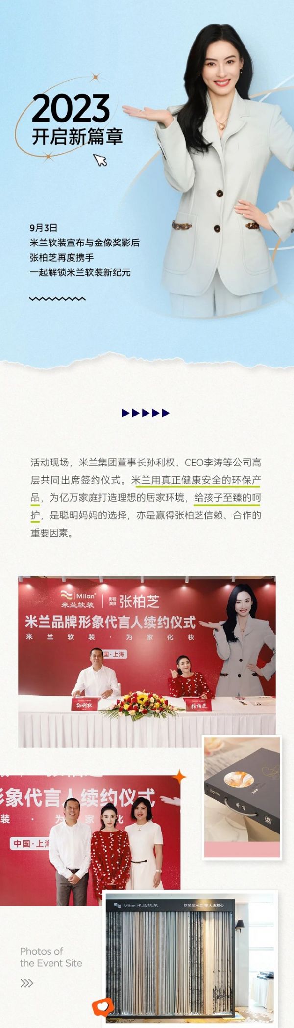 【米兰】重磅官宣!米兰软装与张柏芝再度携手,共创辉煌!