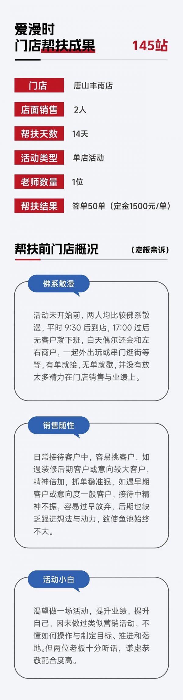 网址: 【爱漫时】14天签50单丨门店帮扶 解锁增长新模式 http://www.jiajubaike.cn/newsview97286.html