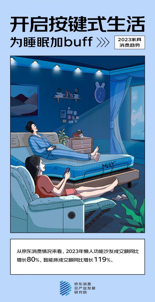 开启按键式生活,为睡眠加buff:作为“第一生产力”,“懒人经济”早已不是过去那种单纯追求省力的“懒”,而体现出人们对生活品质的要求越来越高,正构建起精细和有品质的“懒”。或者说,如果说过去的“懒”是为了节省时间,今天的“懒”则是要为了更加精致的享受美好时光,“质懒”成为一种新的生活方式。