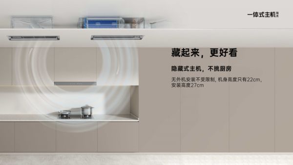 奥普在今年推出的第一代厨房空调,采用瀑式冷风直下技术,能够做到500m³/h的大冷量输出、独立双风道设计,实现冷热风独立循环、冷量无损耗,主机隐藏于吊顶,而且是基于目前大板吊顶设计,外观更契合当下集成吊顶形态趋势,线性风口,在顶部的布局及安装的位置局限性较小,更好地贴合消费者对家电家居一体化的需求趋势。