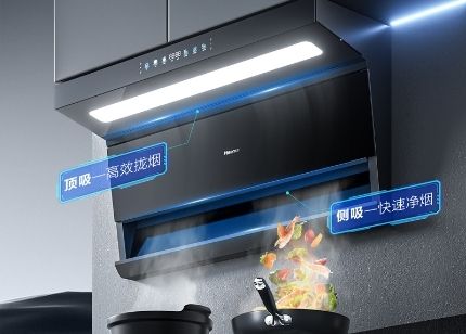 在厨房里,最引人注目的C位非烟机莫属,过去受限于中式厨房面积小的现实处境,烟机往往是“厚砖头”一般的存在,体积偏大吸力不佳,还会给整个厨房带来一种沉闷压抑的感觉。海信烟机DS11H(Plus)油烟机本次焕新上市,一改传统烟机的厚重感,以轻薄身姿博得不少好评,轻松适配各式家装设计风格。用细节设计回归生活品质,海信烟机DS11H(Plus)的舞台天幕大灯、全息炫彩大屏无一不深受消费者喜爱。 跨界顶侧双吸型油烟机,不挡锅不碰头,烹饪空间更大了,也不会被遮挡视线,呈现和谐相融的惊艳效果,重新定义了家居美学。