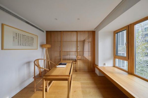 出于个性与职业习惯,女主人对居住空间的风格喜好有别于一般业主,她更加偏爱冷静、克制的基调,对中国传统文化也尤为欣赏。在空间逻辑确立的基础上,KiKi建筑设计事务用大道至简的方式,注入特定的抽象元素与东方诗意。空间的整体色调以极简黑、白、灰为主,除却大面积的使用木材、微水泥等质朴材料,处处留白的设计手法,如同传统水墨般,展现文人雅致的审美意趣。此外,一些细节设计上随处可见传统味道:楼梯的金色窄扶手,精巧且考究;浴室在局部使用瓦片进行堆叠造型,轻松而玩味;纤细的木格栅门扇,古朴亦清雅…