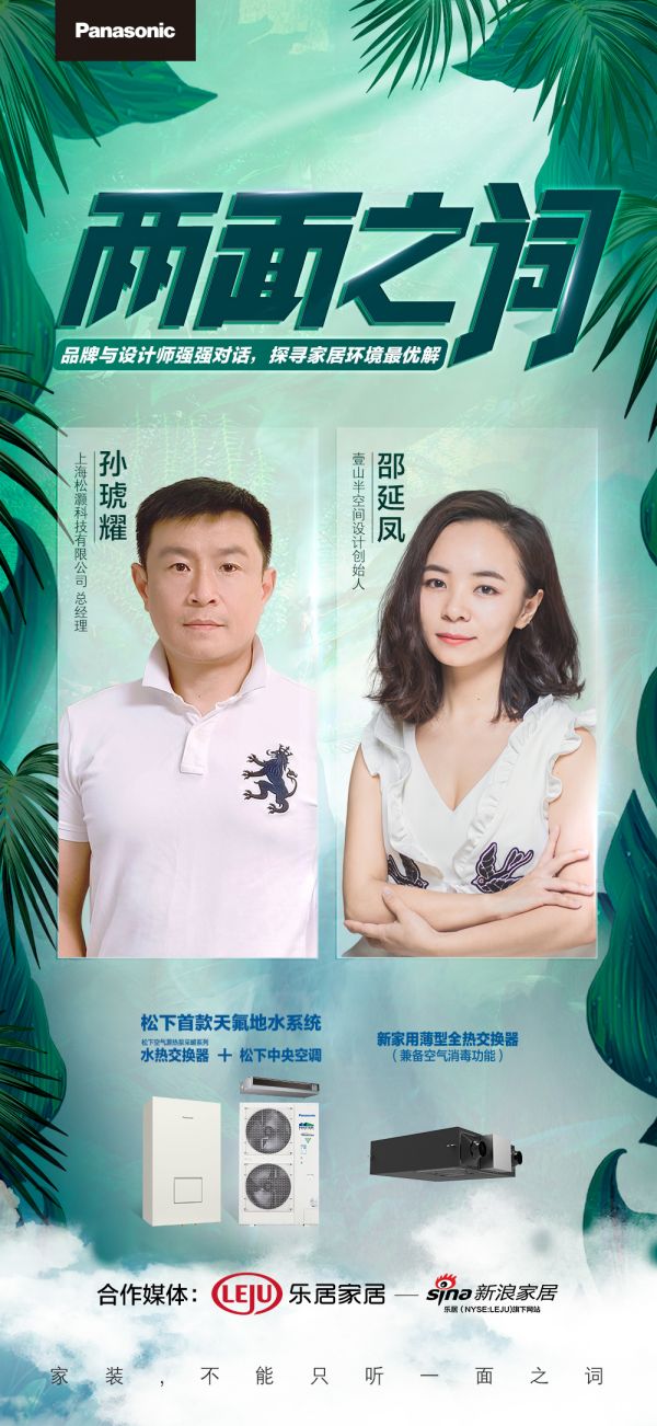 一个理想的居家空间不能只听一面之词,要让设计和品牌都来发声。为了探寻家居环境最优解,松下携手新浪家居与诸多优秀设计师们共同打造视频栏目《两面之词》。本期栏目邀请嘉宾:壹山半空间设计创始人/设计总监 邵延凤,上海松灏科技有限公司 总经理 孙琥耀。两位深入解读设计空间新趋势,携手为消费者构建绿色健康的小资生活空间。作为行业创新技术代表——松下将创意和实力共舞,探究舒适生活新理念,为消费者营造舒适环境。