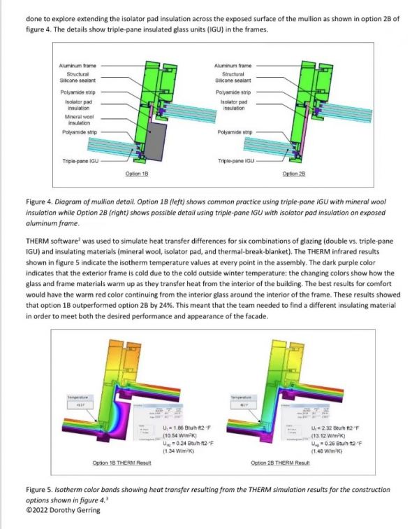 书中系统研究了Warmframe暖框技术,热工设计,幕墙隔热毯设计方式及工程系统质保管理,研究表明了THERM建模如何成为决定立面元素性能的重要部分。超高层建筑必须满足绿色建筑节能,可持续,安全,及耐久性能等关键技术要求。设计团队发现,这意味着幕墙的U值要求非常高,设计师须解决气密性和防潮性以及结构安全问题的同时,确定如何满足能源效率需求、实现成本效益,并验证系统设计的性能,而不牺牲立面的美观性。设计团队采用了Warmframe幕墙隔热毯创新技术作为解决外墙U值要求下的高性能隔热材料应用设计系统,以满足期望的综合建筑性能,设计自由度,以及高质量工程系统管理要求。