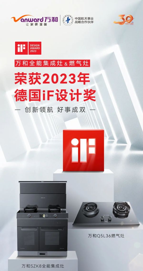 目前,凭借人性化设计美学和兼具功能与美感的产品研发设计优势,万和SZK8全能集成灶斩获了包括德国iF设计奖、2023集成厨电行业“创新产品”等在内的多项大奖。