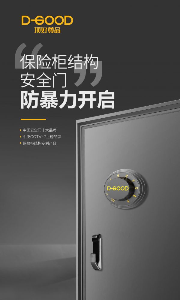 顶好尊品“保险柜结构”安全门,防暴力开启远超国家甲级标准。“保险柜结构”安全门,目前在防盗门市场上是独一wu二的产品。顶好就是要将的这样产品价值理念,注入每一个经销商和消费者的心中,为顶好的终端营销创造最大的价值。不仅消费者第一时间能体验到比国家甲级标准防盗门还要好的产品,对于经销商而言,在行业内卷严重,产品极其同质化的时代,拿到差异化产品,就是抢占市场先机。