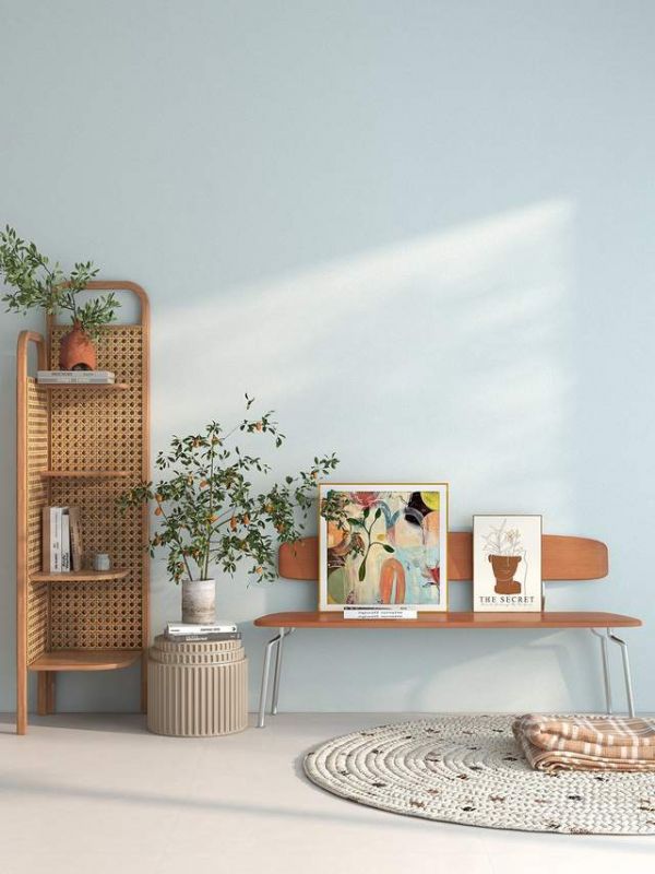 初秋时节,仍然带着夏日的生机,淡蓝色的墙布持续消解着残存的酷暑。质感轻盈的浅棕色木质家居,让空间更加的灵动纯净,与淡蓝色一起将空间的热量转化为更为柔和的温度,打造养眼清新、活力温暖的家居氛围。