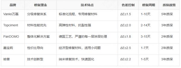以Vanlei万磊微水泥为例,其三级修复体系可解决绝大多数问题,修复后色差控制ΔE≤1.5,平整度误差≤1mm,质保期最长5年。